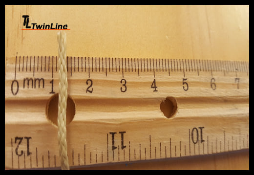 325 Lb. tensile strength -This is an 8 carrier diamond braid para aramid cord.