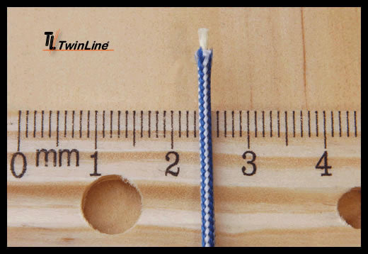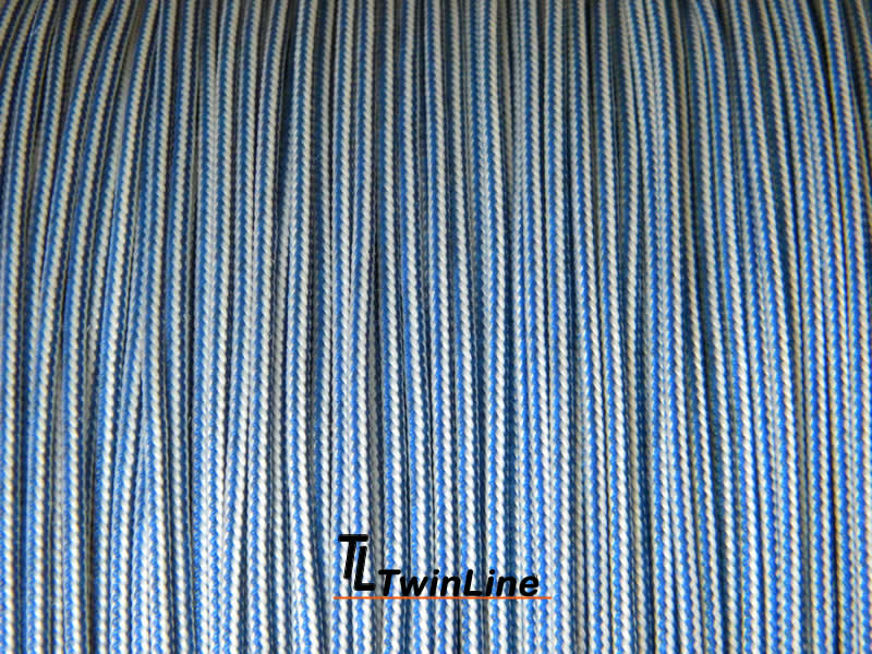Sleeved Kevlar® 250 Lb. tensile strength - Kevlar® base with a blue and white polyester braided sleeve.