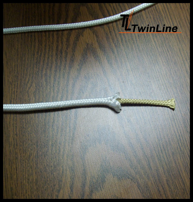 Braided Technora® 2000 Lb. core with a white braided Polyester sleeve.