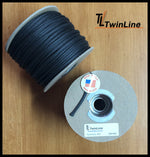 Black braided Technora® 950 Lb. (minimum tensile strength). Black solution or doped dyed yarns are manufactured by adding a black pigment color to the polymer melt in spinning process. This results in fibers that are fully impregnated with pigment coming out of the spinnerets in a one step process. This process results in outstanding colorfastness and enhances UV protection.